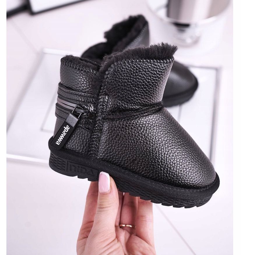 Apawwa Apawwa Dětské černé teplé sněhové boty Let It Snow černá
