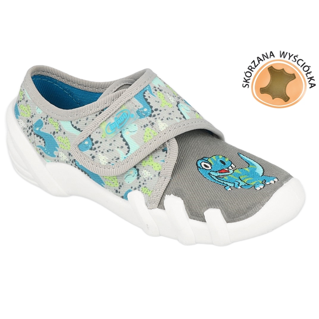 Měkké, vzdušné a bezpečné pantofle pro aktivní chlapce. Model BEFADO 273x342 kombinuje pohodlí každodenního používání s řešeními doporučenými specialisty: prodyšná bavlněná textilní svršky, kožená vložka a tuhá pata, která při hraní a učení stabilizuje nohu. Vložka do paty se systémem Absor -B efektivně absorbuje mikrofríny a podešve poskytuje dobrou ventilaci nohou. Upevňování suchého zipu usnadňuje nasazení a rychlé zapadnutí.