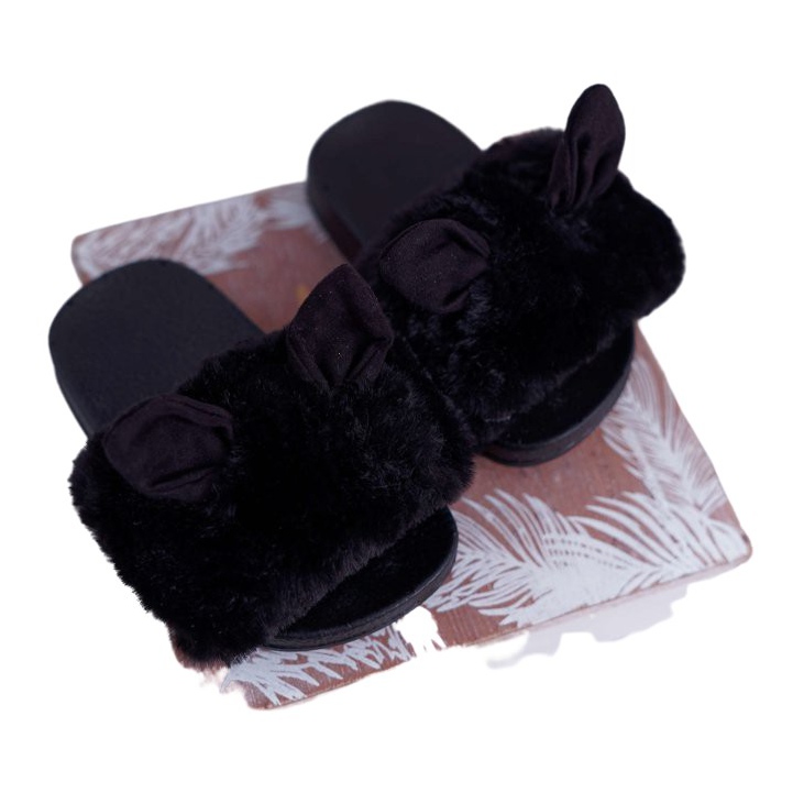 FRROCK Dětské pantofle s kožešinou a poškozením černé Thoa černý