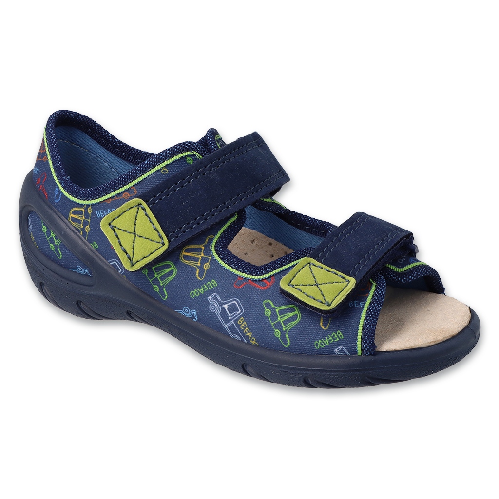 Dětské sandály befado 063x016 jsou skvělou volbou pro malé chlapce, kteří si chtějí užít pohodlí a bezpečnost každého dobrodružství. Jejich dynamická modrá barva s motivem automobilu jistě přitahuje pozornost dětí i jejich rodičů.