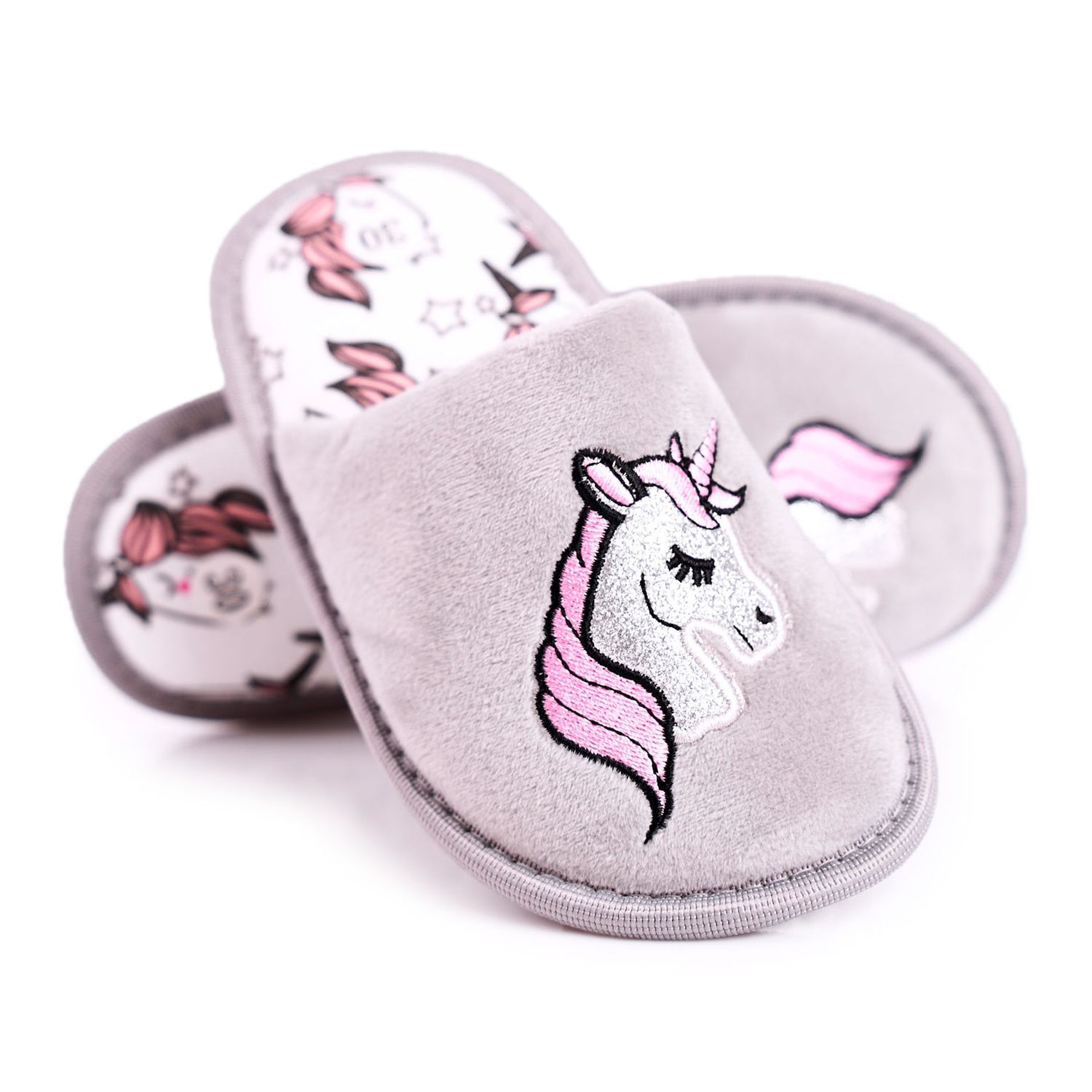Podrobnosti: Dětské šedé pantofle Unicorn s Unicorn růžový stříbro šedá