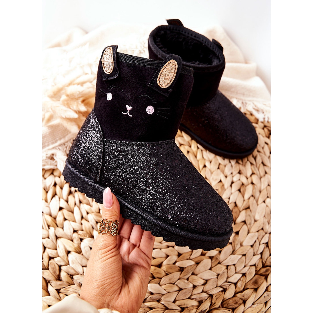 Objevte jedinečné dětské sněhule od Vincezy, které se stanou v zimních dnech nepostradatelným prvkem šatníku vaší malé princezny! Tyto černé kotníkové boty vyrobené z vysoce kvalitního ekologického semiše kombinují moderní styl s funkčností. Částečně pokryté jemnými třpytkami jistě osloví každou dívku, dodají jí kousek lesku a jedinečný charakter.