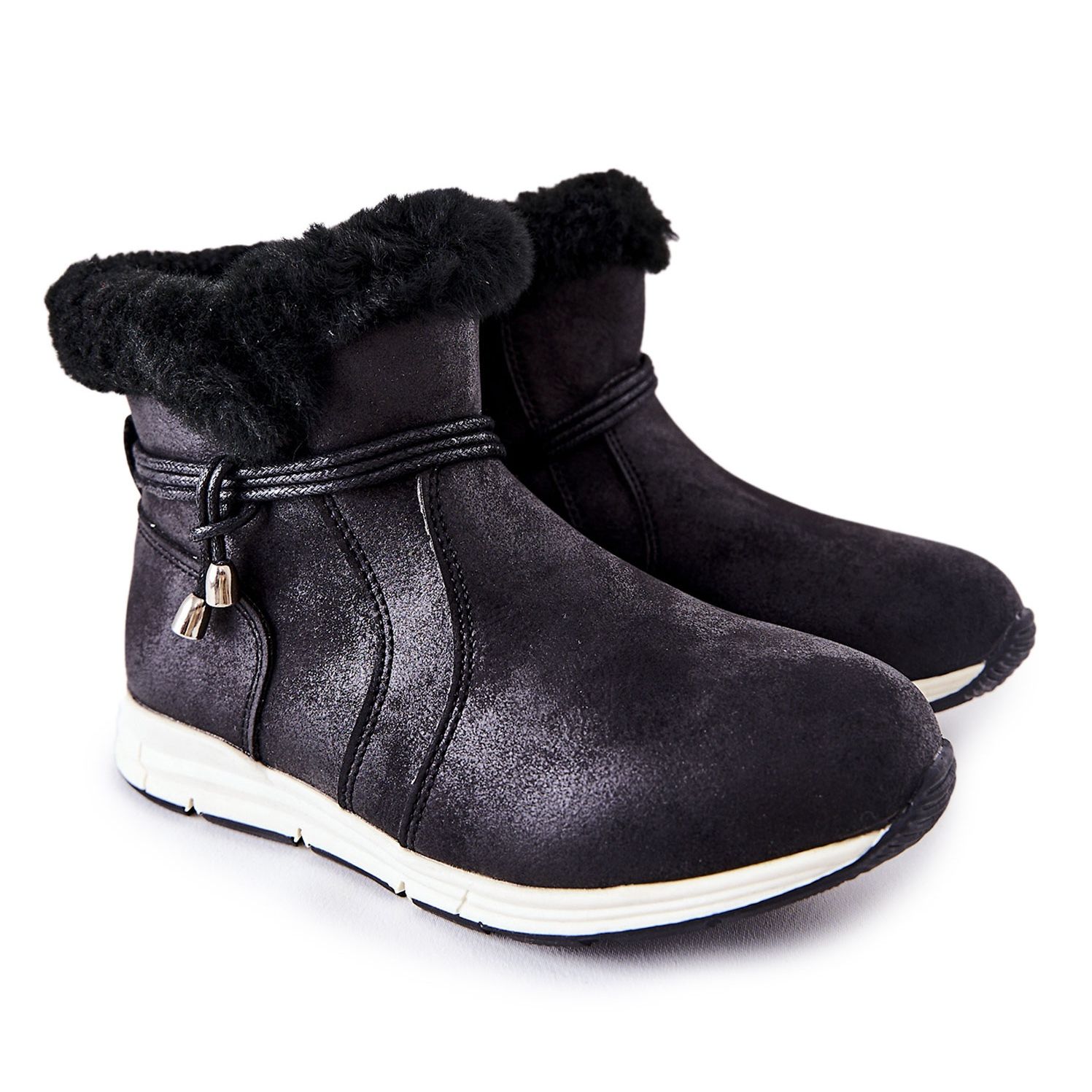 Dětské boty Snow Boots Big Star BB374056BS - Černá, teplá a stylová, ideální pro chladné dny. Vyrobeno z semišové ekologické kůže, s izolací ve formě přikrývky z měkké obuvi, poskytují pohodlí a ochranu před chladem. Připevněný jezdcem s dekorativním řetězcem na horním a velkým hvězdným logem na hradu - praktický a estetický.