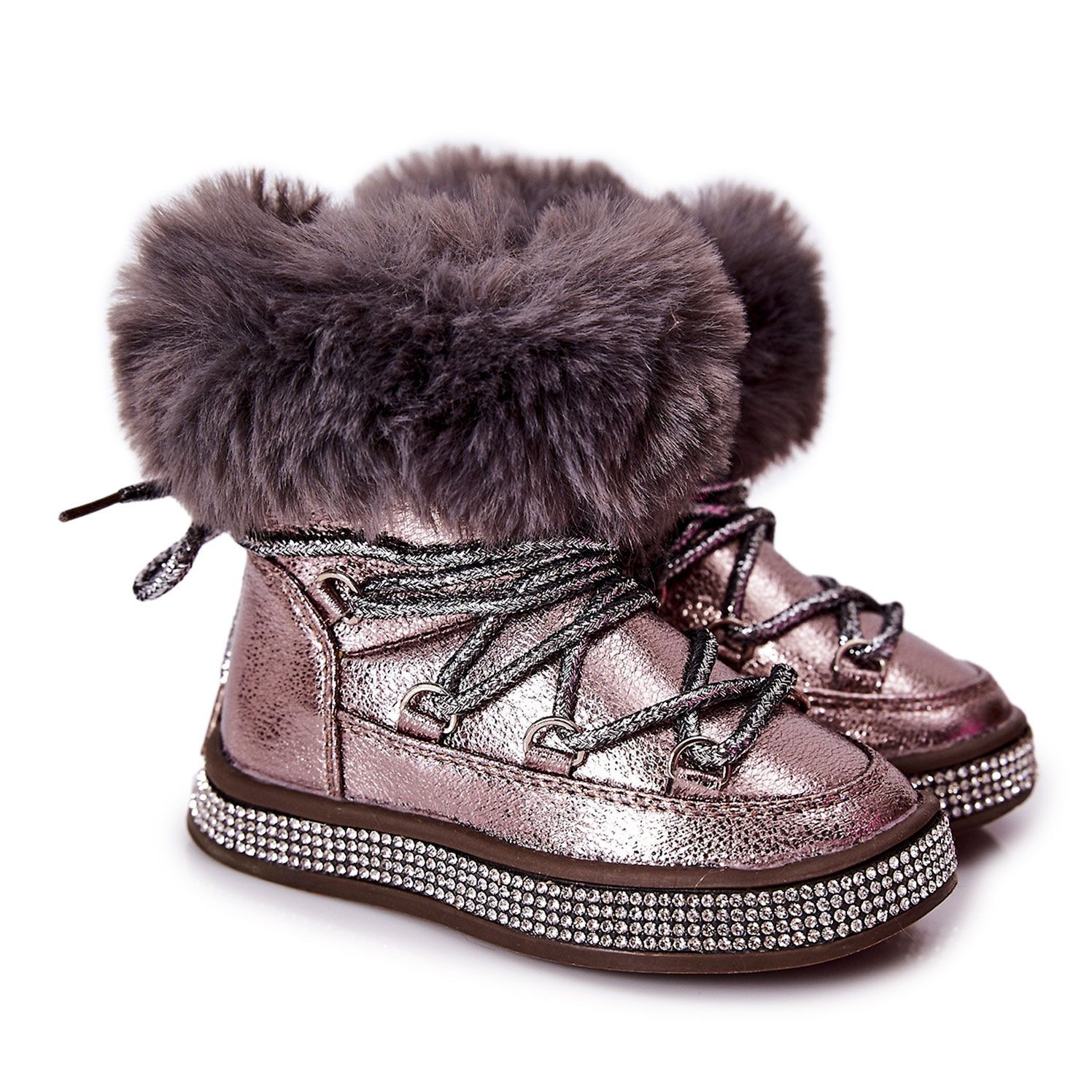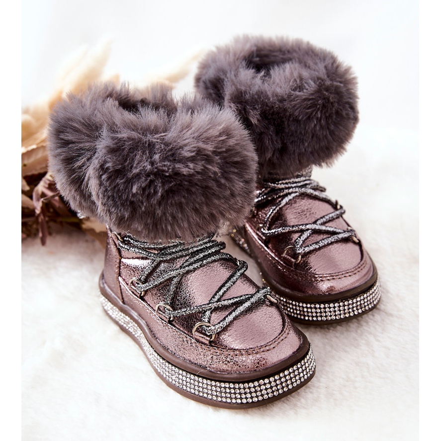 Inna marka Dětské sněhule s kožešinou šedohnědé Grandis hnědý vícebarevný zlatý