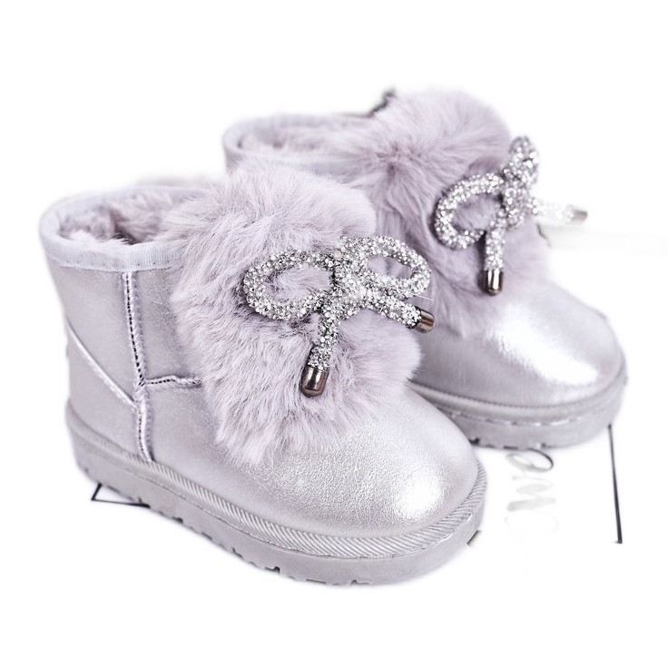 Dětské sněhule s kožešinou Silver Aurora stříbro