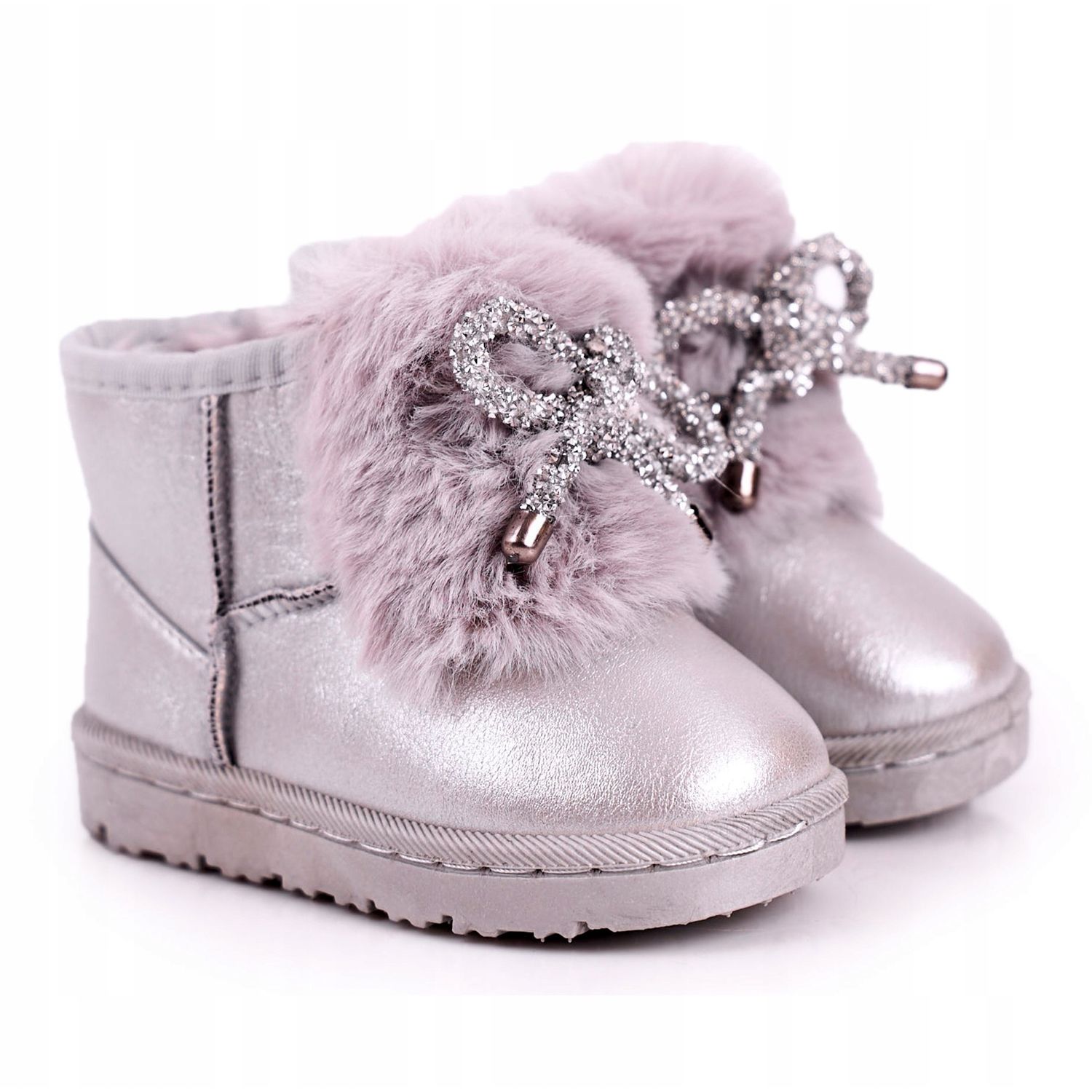 Dětské sněhule s kožešinou Silver Aurora stříbro