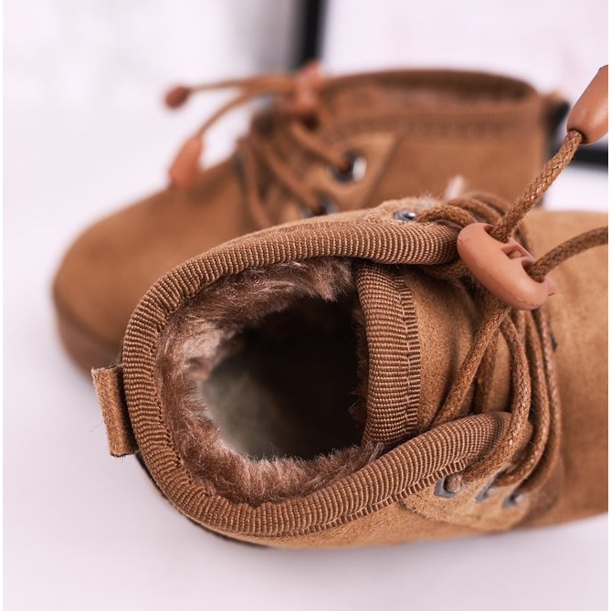Inna marka Dětské šněrovací boty zahřáté s kožešinovým lovcem hnědý