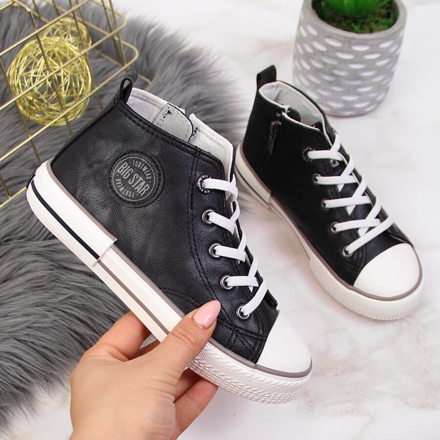 Dětské tenisky Eco Leather Black Big Star II374003 - pohodlí a styl každý den. Tyto vysoké tenisky od značky Big Star kombinují klasický vzhled s praktickými řešeními, díky čemuž jsou při hraní a na procházce fungují.