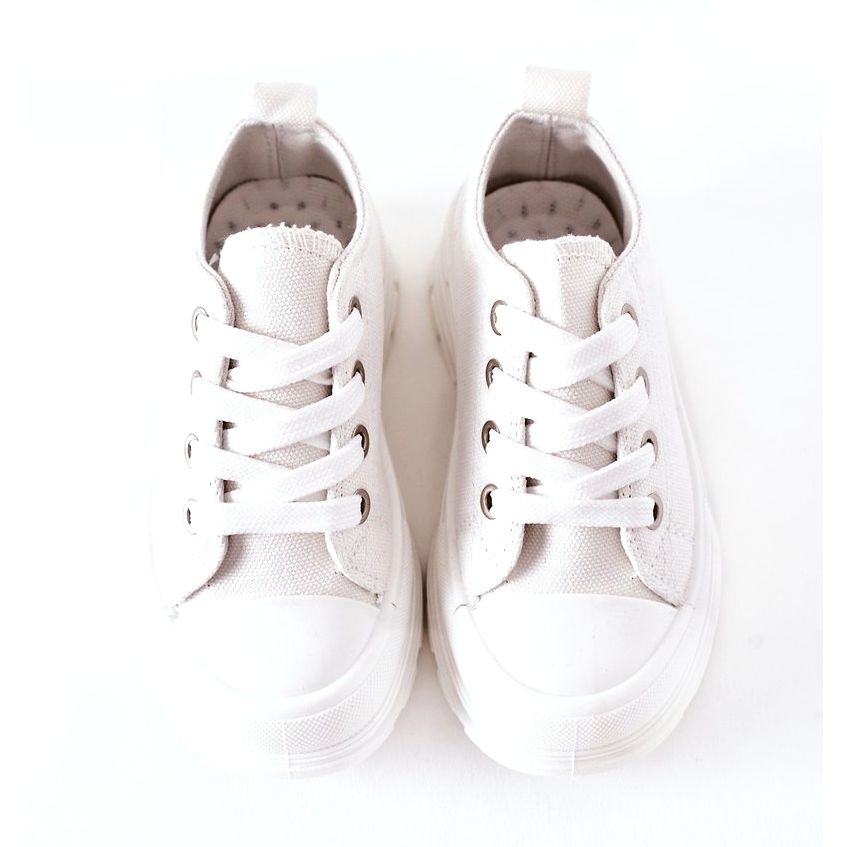 Stylové a praktické tenisky pro dívky, vyrobené z tkaniny odolné vůči špíně. Klasická bílá a vyvýšená platforma vytvářejí módní a zároveň pohodlný dokonalý model každý den.