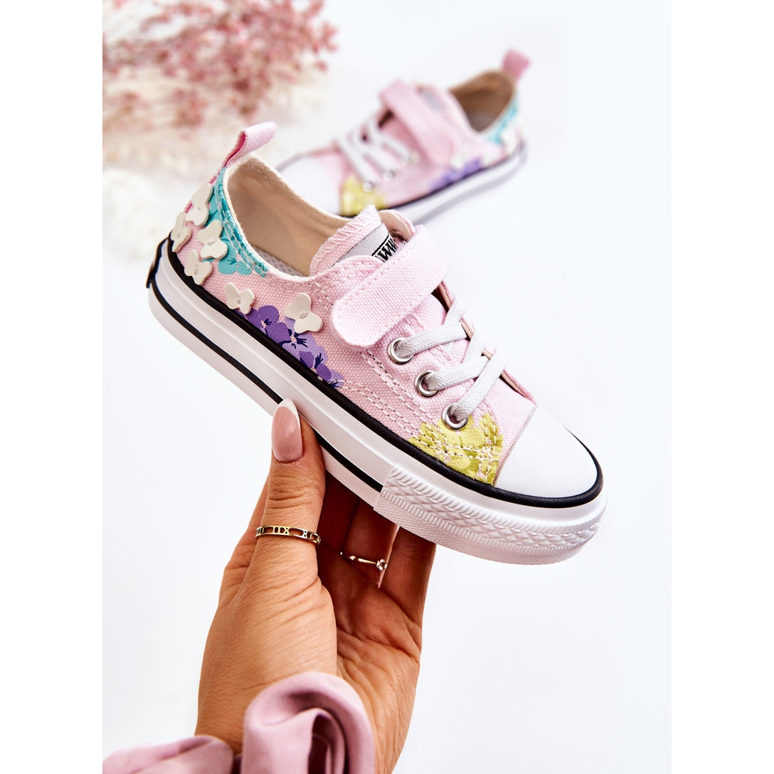 Nádherný vzor a našití motýlci na boku svršku dávají tyto tenisky vyniknout ostatním. Elastické pásky imitující tkaničky jim dodávají sportovní charakter a měkká vyjímatelná látková stélka zaručí pohodlí při nošení po celý den. Tenisky mají také mírně vyztuženou patu a protiskluzovou podrážku z gumy, která zajišťuje bezpečnost při hraní.