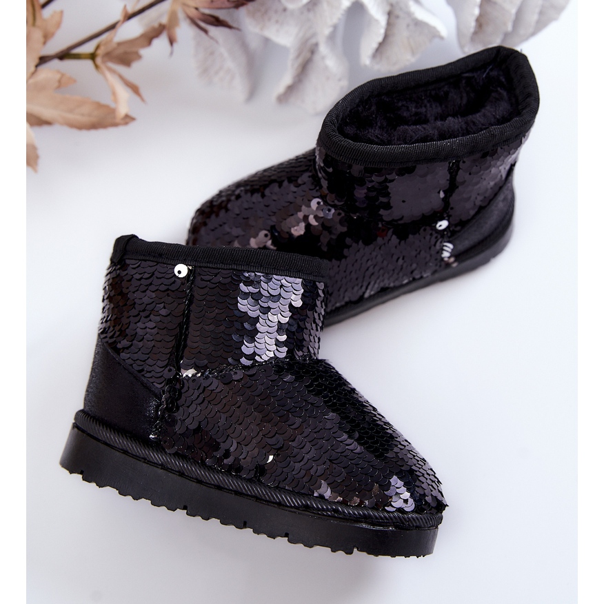 FR1 Dětské teplé sněhule s flitry černým střepem