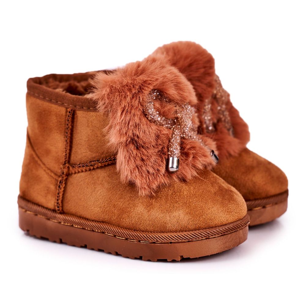 Inna marka Dětské teplé sněhule s kožešinovým semišem Caramel Amelia hnědý