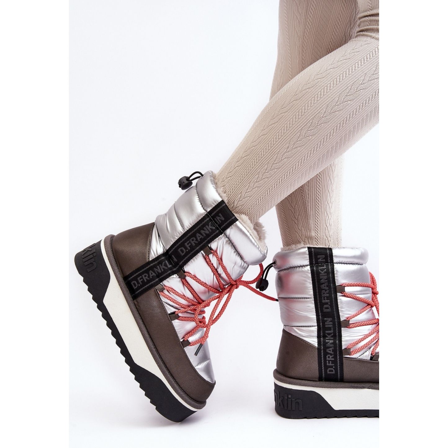 Dzięki wsuwanemu zapięciu, ich zakładanie jest niezwykle proste, co czyni je praktycznym wyborem dla wszystkich aktywnych kobiet. Wybierz śniegowce DFSH371006 Silver i ciesz się połączeniem wygody, ciepła oraz modnego wyglądu przez całą zimę!