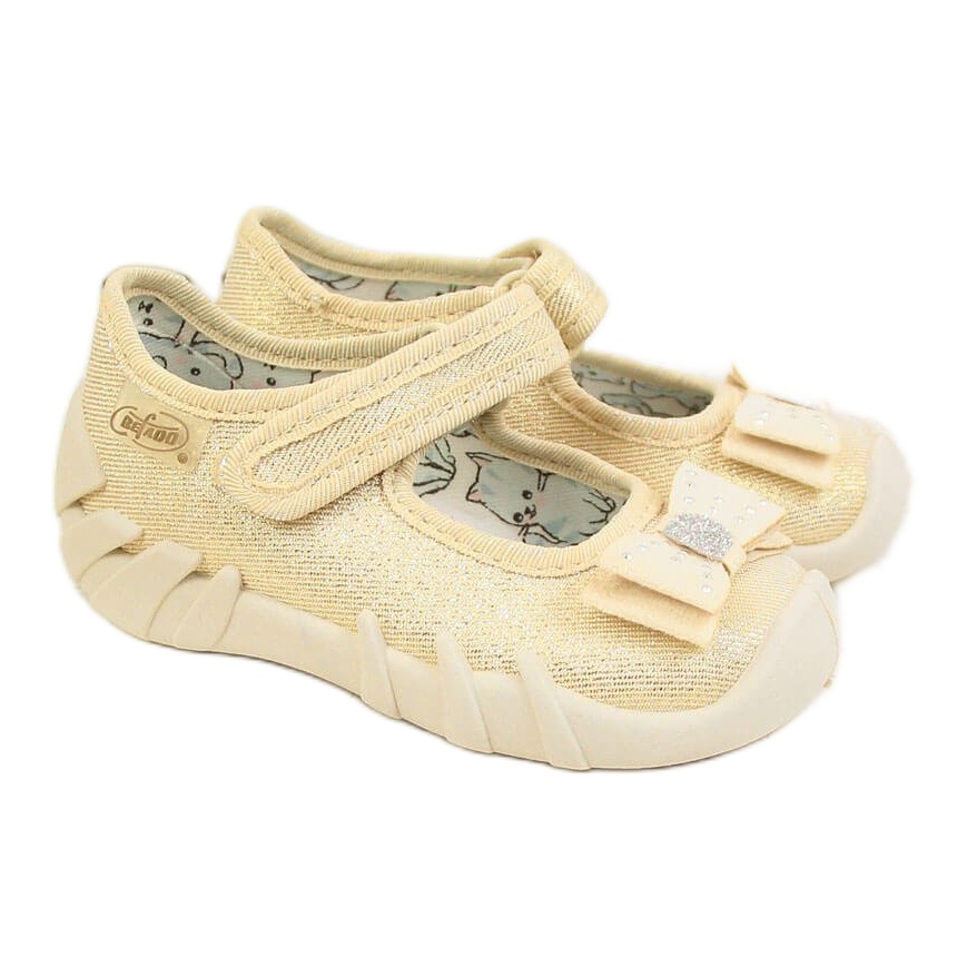 Podrobnosti: Dívčí baleríny béžové pantofle na suchý zip s mašlí Befado béžový