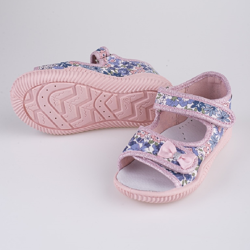 Papučky mají plnou špičku a tuhou patu, která zaručí stabilitu a oporu pro dětskou nohu. Díky textilní vložce kombinované s přírodní kůží zajišťují komfort nošení po celý den. Zapínání na suchý zip usnadňuje nazouvání a svlékání, což je důležité zejména pro nejmenší.