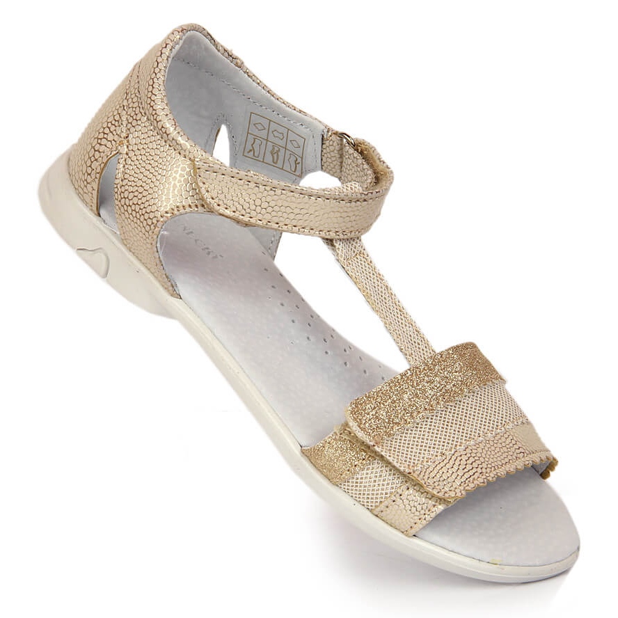 Nabízíme dívčí sandály na suchý zip v krásné zlaté barvě od renomované značky Kornecki - model 6705. Tyto letní sandály jako stvořené do teplých dnů skvěle doplní každý styling. Vyrobeny z vysoce kvalitní ekologické svrchní kůže zajišťují pohodlí a odolnost a vložka a podšívka z přírodní kůže zaručují pohodlí při nošení.