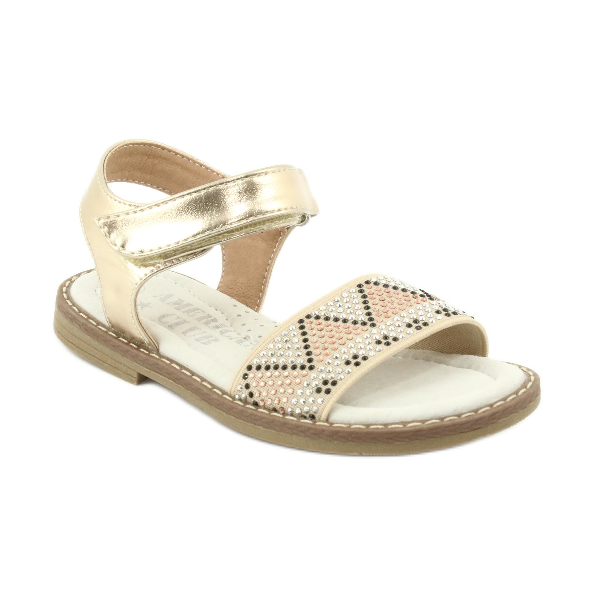 American Club American Club Dívčí zlaté sandály se sekvinovými koženými vložkami GC08/20 zlatý