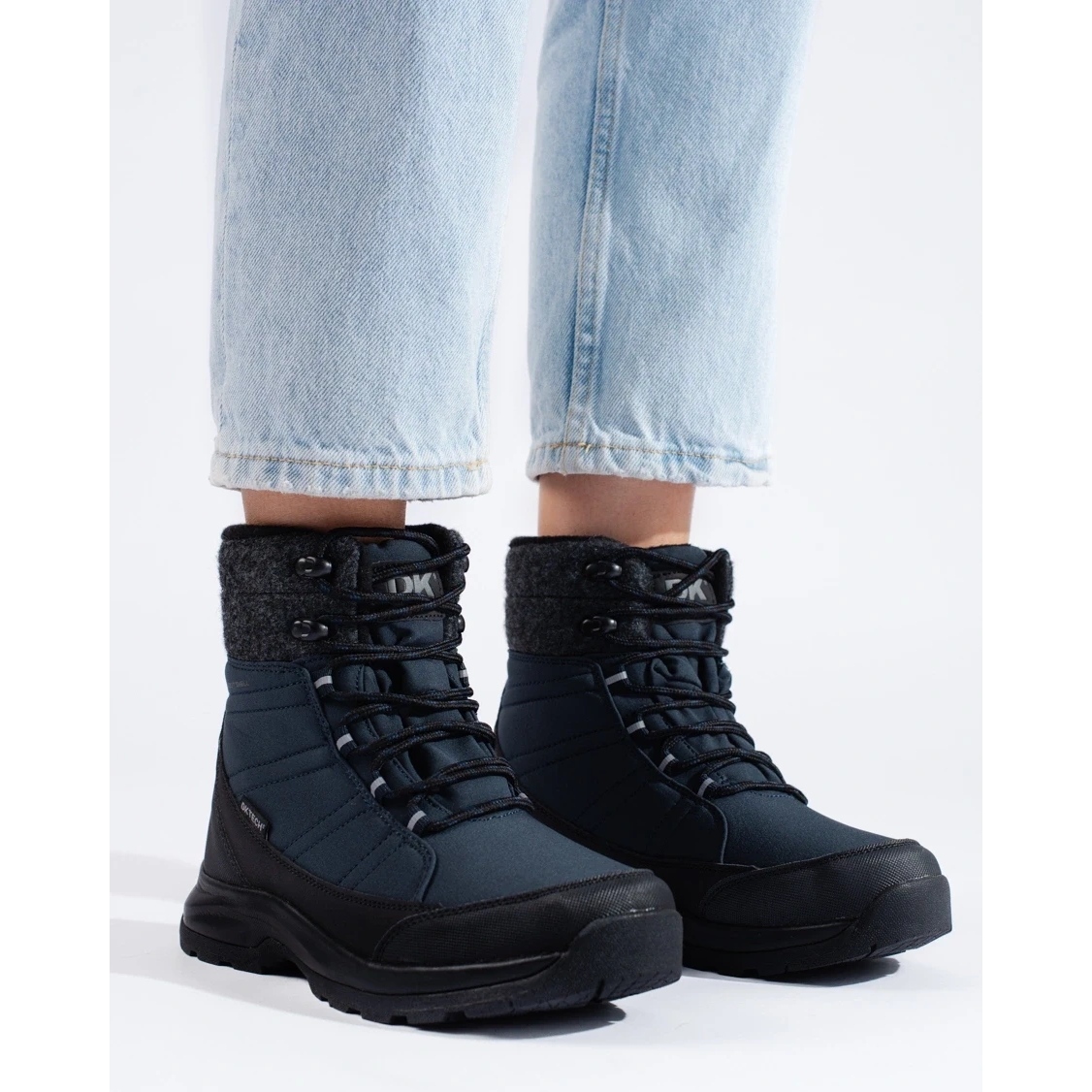 DK DK tmavě modré dámské sněhule na šněrování černá