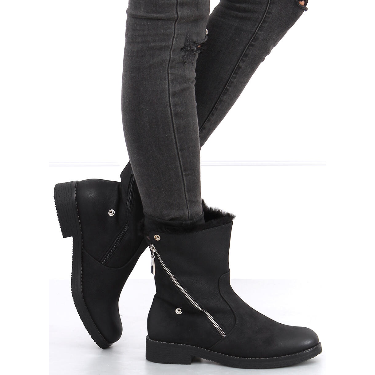 Tento model byl vytvořen s ohledem na každodenní nošení a jejich pohodlné zapínání na zip je významným komfortem. Vnitřek kozaček je zateplený kožíškem, což z nich dělá perfektní volbu do chladnějších dnů. Vyrobeny z matné ekologické kůže, vypadají nejen stylově, ale jsou také šetrné k životnímu prostředí.