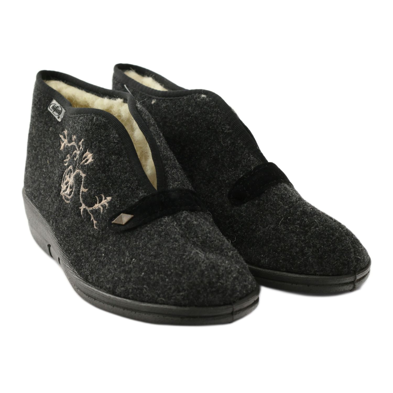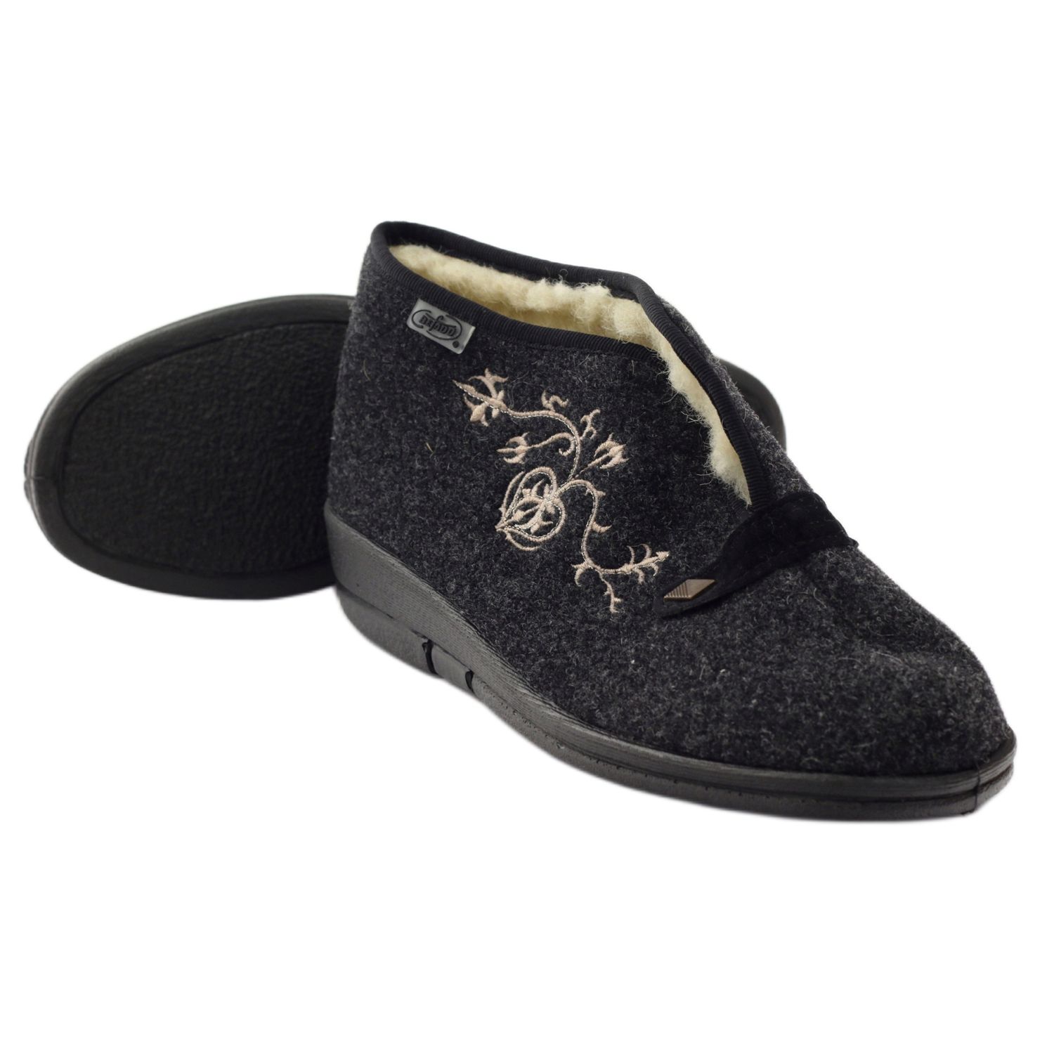 Hřejivé, pohodlné a stylové - pantofle od polské značky Befado, model 031D028, jsou dokonalou kombinací funkčnosti a módního vzhledu pro chladnější dny. Vyrobeny z vysoce kvalitní plstěné tkaniny, zateplené přírodní ovčí vlnou, poskytují pohodlí a ochranu před chladem jak doma, tak na dvoře.