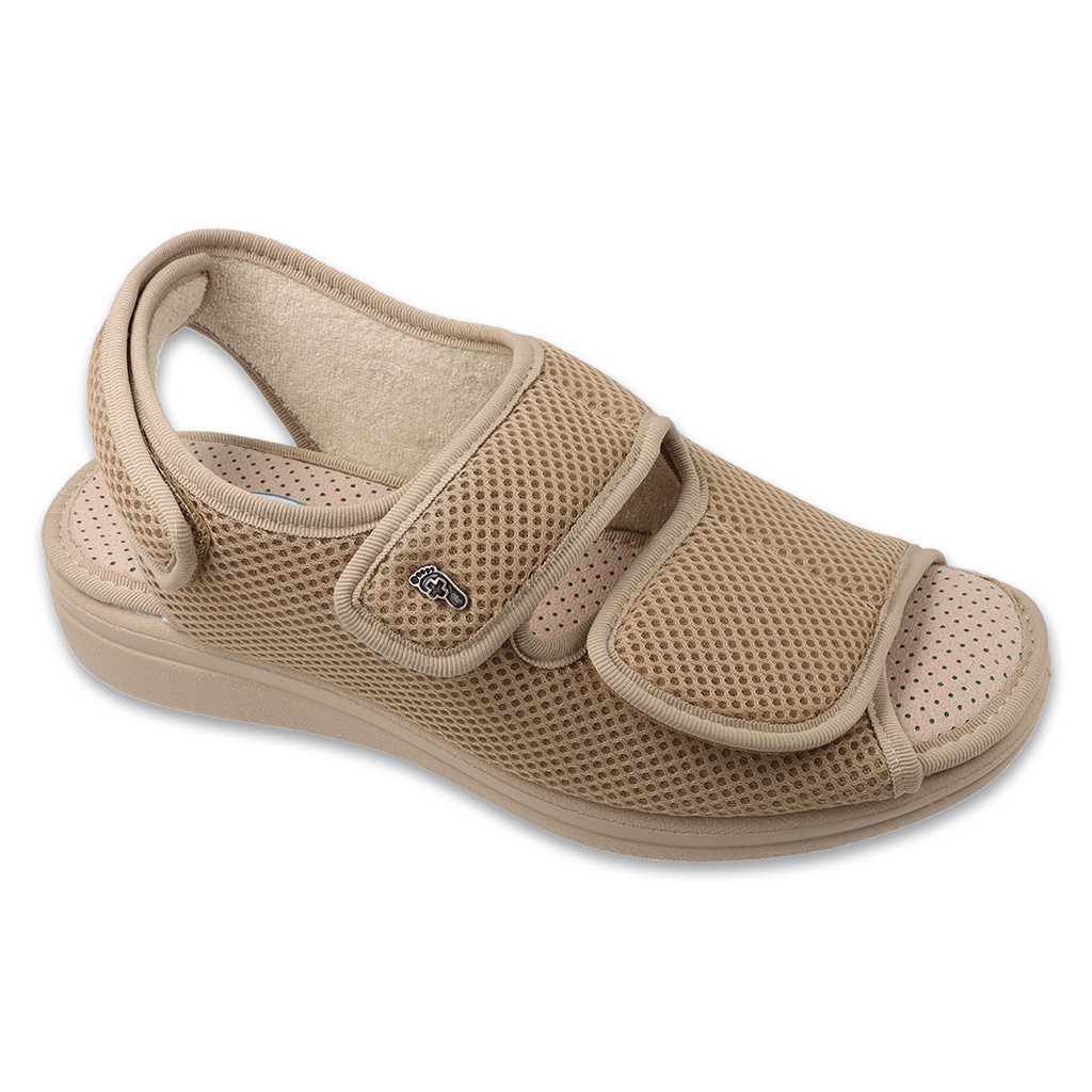 Sandály jsou vyrobeny z síťového materiálu, který zajišťuje dostatečný cirkulace vzduchu a stabilní podešve zaručuje bezpečnost při chůzi. Kromě toho má tento model doporučení polské asociace diabetiků, což z něj dělá dobrou volbu také pro lidi se zdravotními problémy, včetně diabetické nohy.