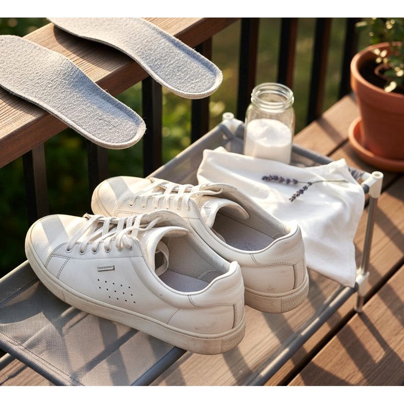 Když přijdete domů, vyjměte vložky z bot a nechte je uschnout samostatně. Vložky, zvláště měkké a pot pohlcující, jsou magnety na pachy. Někdy můžete vložky vyměnit za nové nebo je vyprat v horké vodě. Boty navíc okamžitě vybalte – nenechávejte je zaseknuté v tašce nebo skříni. Pokud máte boty vlhké, umístěte je na dobře větrané místo, nejlépe na slunce, které má přirozené antibakteriální a dezinfekční vlastnosti.