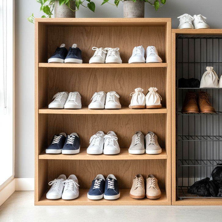 Skladování obuvi na teplých a vlhkých místech (jako je koupelnová skříňka nebo uzavřená taška) podporuje růst bakterií. Boty raději skladujte na suchém, dobře větraném místě – nejlépe v otevřené skříni nebo na polici, kde mohou „dýchat“. Pokud máte velkou sbírku bot, zvažte přidání sáčku jedlé sody do každého páru – jedlá soda pohlcuje vlhkost a pachy. Mění to každý měsíc. Někteří lidé používají ke stejnému účelu i aktivní uhlí – je mimořádně účinné.