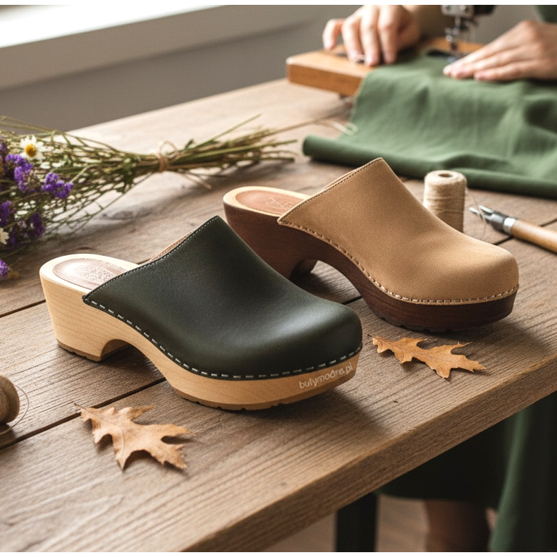 Moderní nabídkou jsou dřeváky v kombinaci s širokým denimem a oversized sakem - kombinace z pomezí 70. a 90. let, která je mimořádně aktuální v roce 2026. Do kanceláře noste ležérní dress code: jemné kožené dřeváky s klasickými lodičkami nebo mačkané chinos s košilí - vypadá to překvapivě elegantně. Na léto: dřeváky jako alternativa k žabkám ke krátkým šatům nebo kraťasům - pohodlné a viditelné.