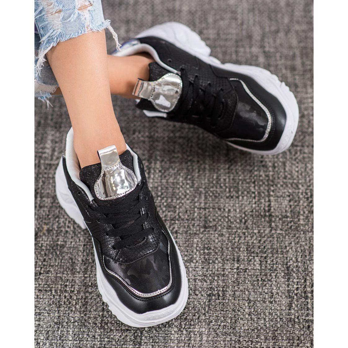 Objevte módu a pohodlí v jednom! Tenisky SHELOVET jsou mimořádně stylovou volbou pro ženy, které oceňují pohodlí i eleganci. Tyto černo-šedé boty vyrobené z vysoce kvalitní eko kůže budou perfektní po většinu roku a dodají charakter každému stylu.