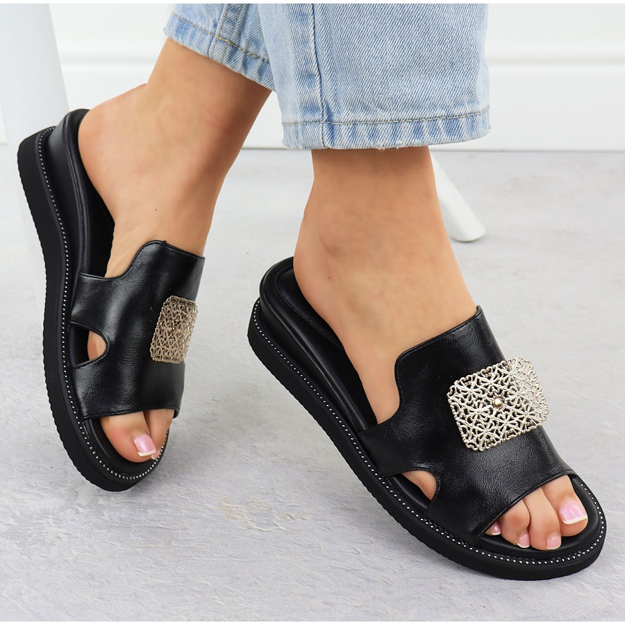 Ekologické pantofle na černé platformě s ozdobou Jezzi 2267 černý