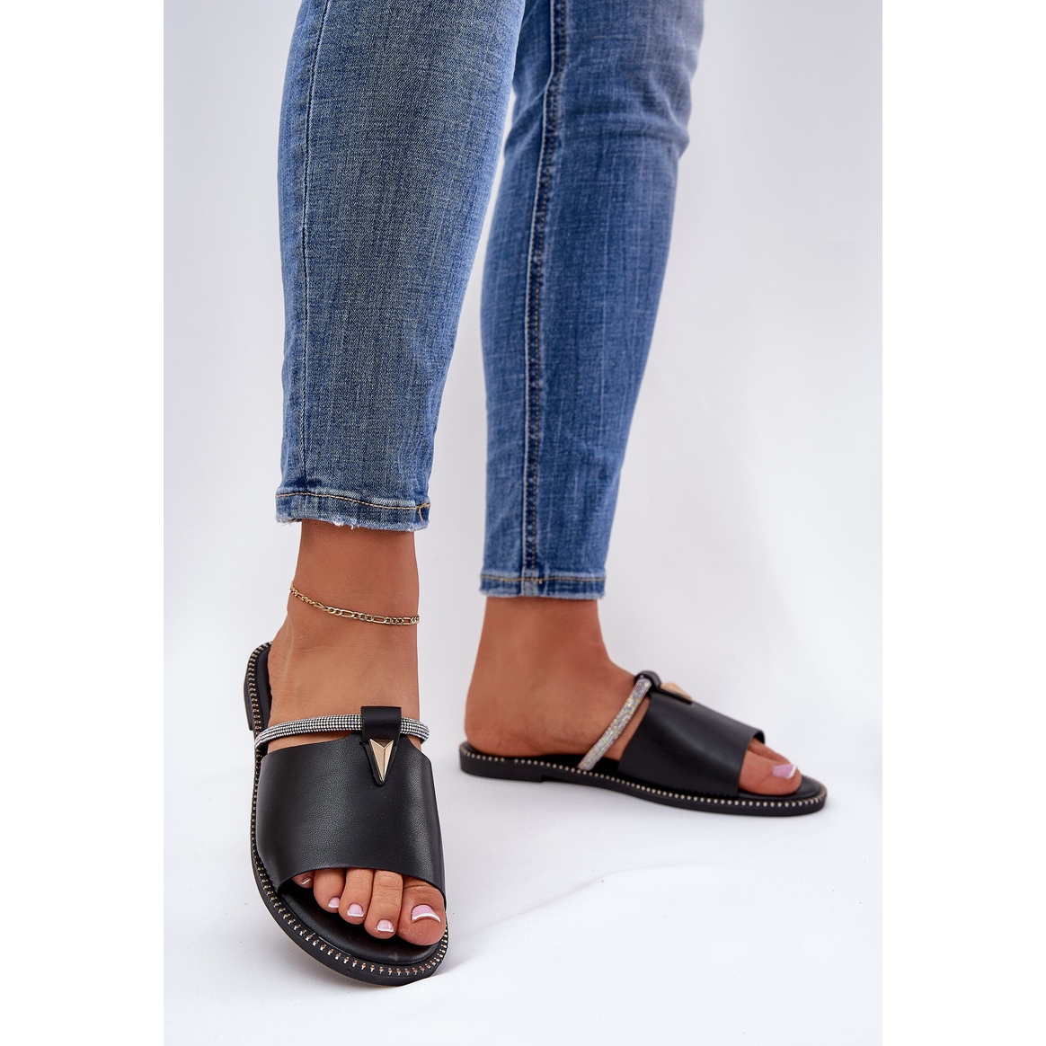 Objevte eleganci a pohodlí s plochými klapkami na pokožku Eco Leather, které jsou pro teplé dny vynikající volbou. Tyto stylové žabky v klasické černé barvě se rozlišují dekorativním proužkem se zirkony, což jim dává zvláštní záře. Ideální pro různé příležitosti budou pracovat každý den i během elegantnějších východů.