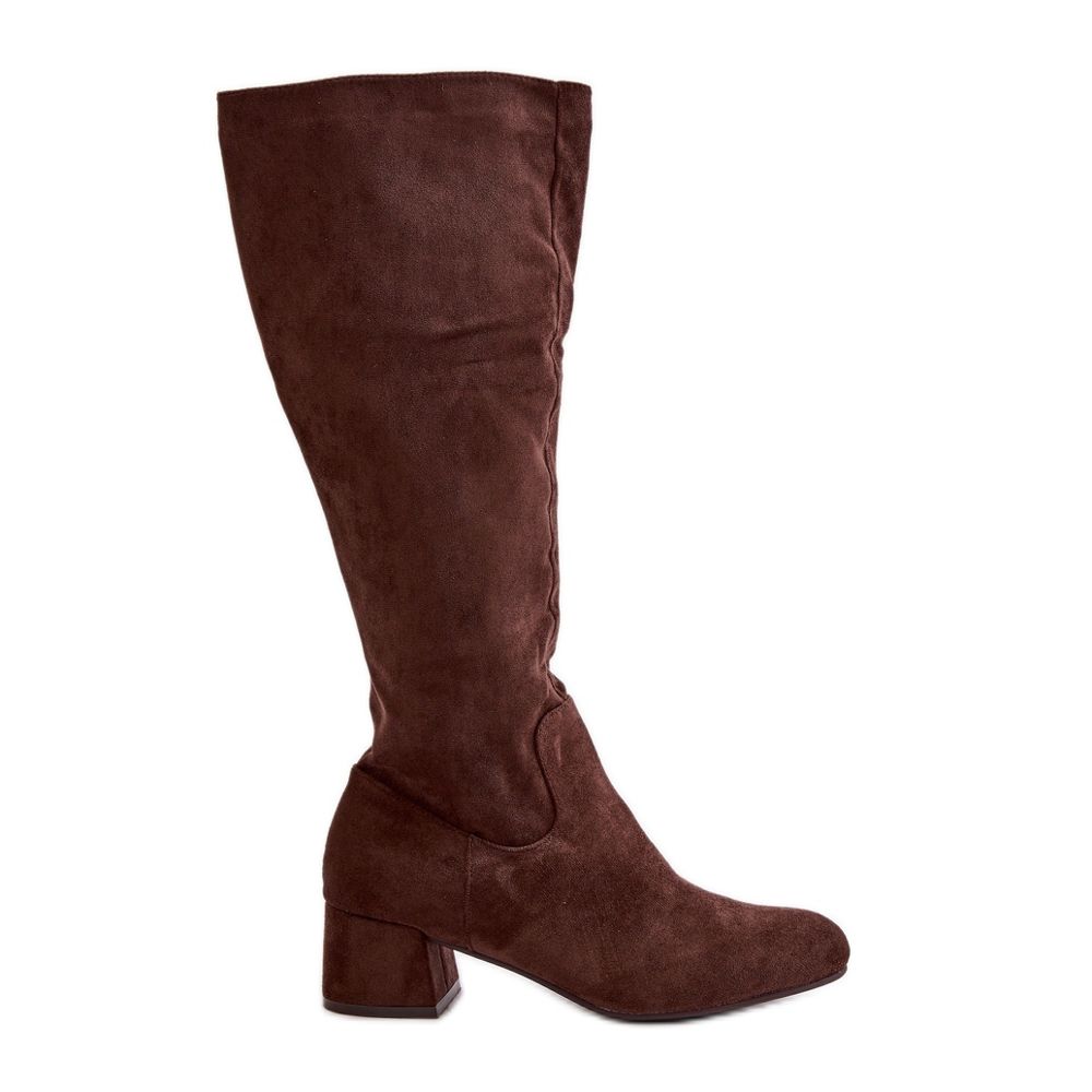 Inna marka Ekologické semišové dámské kozačky nad kolena se zipem, hnědá Elitara hnědý