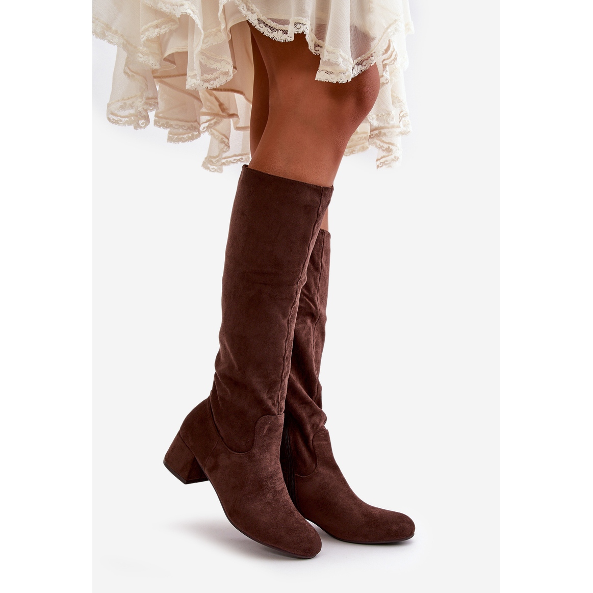 Horní dosah na koleni jim dává elegantní postavu, zatímco nízká pata ve formě post (5,5 cm) zajišťuje pohodlí nošení po celý den, ideální pro dlouhé procházky nebo víkendové výlety. Díky upevnění zipu je nasazení a sundávání obuvi rychlé a jednoduché.