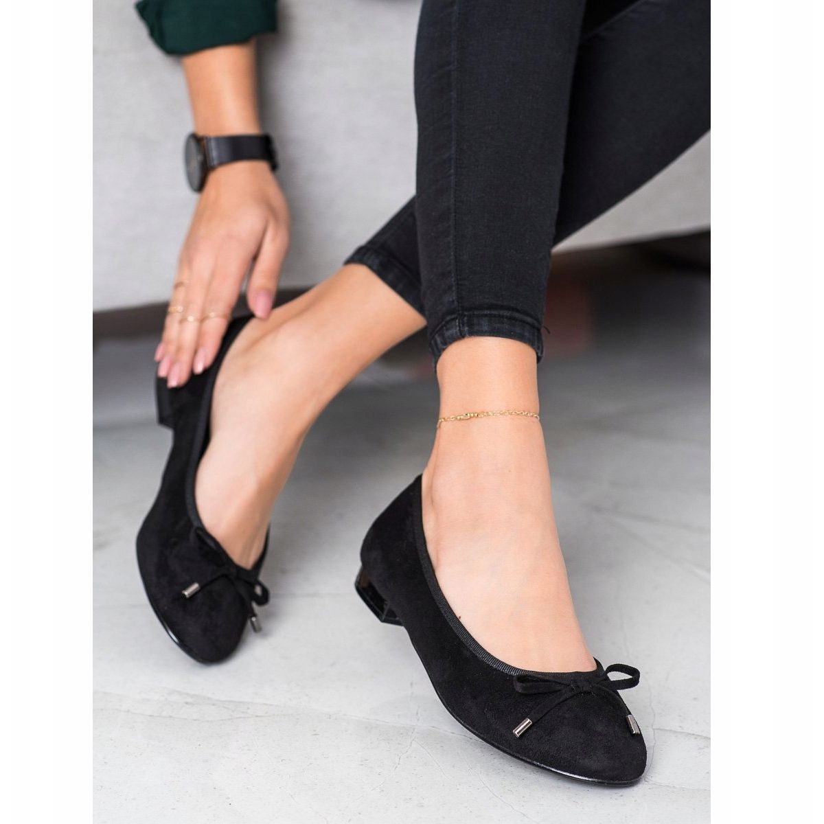 Balerínky vyrobené z vysoce kvalitní ekologické semišové kůže se vyznačují kulatou špičkou a vybudovaným měkkým podpatkem, který zajišťuje komfort nošení po celý den. Nízká základna (1,0 cm) je dělá nejen pohodlnými, ale i elegantními. Navíc jemná mašlička na přední straně dodává šarm a dívčí šarm.