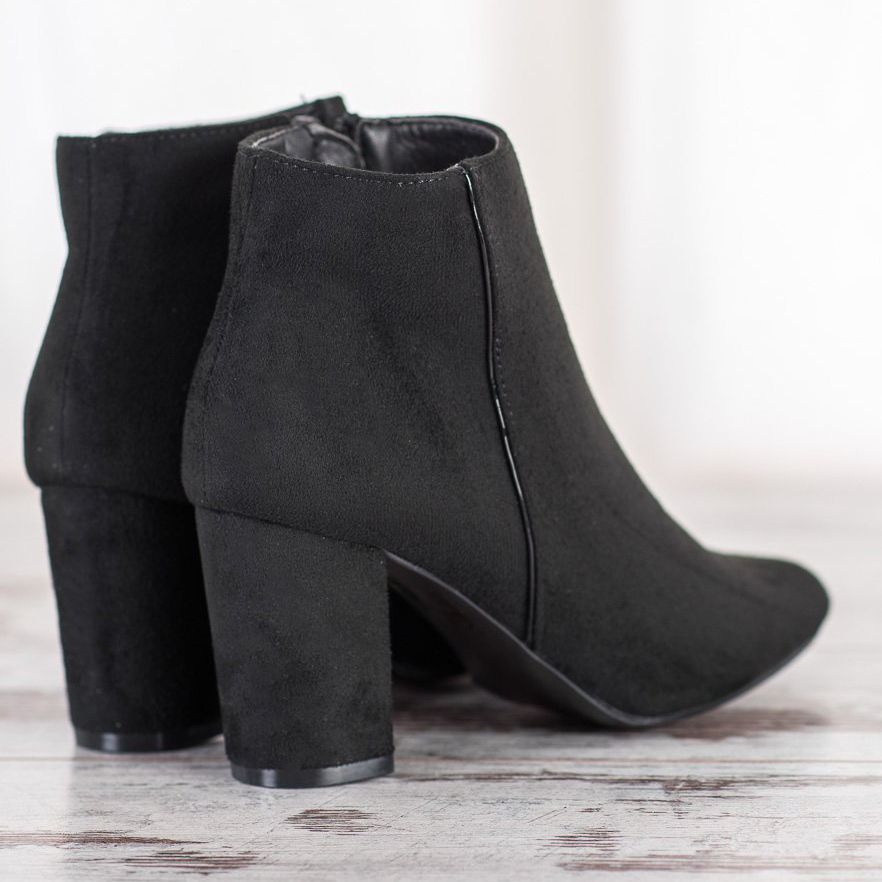 Objevte eleganci a styl s kotníčkovými botami se špičatou špičkou Goodin v černé barvě. Tyto klasické boty vyrobené z ekologické kůže v imitaci semiše jsou perfektní volbou pro každou ženu, která chce svému vzhledu dodat šik. 8 cm vysoký blokový podpatek dokonale prodlouží nohy, zdůrazní ženskou siluetu a kulatá špička a zabudovaná vyztužená pata zajistí mimořádný komfort nošení.