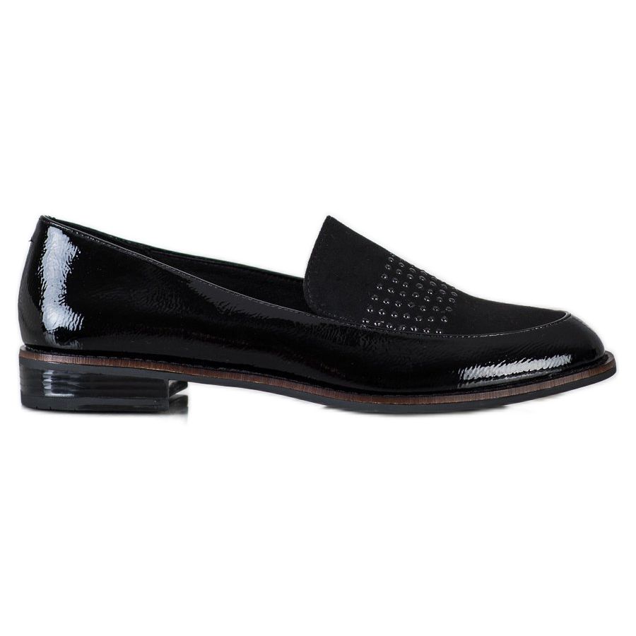 Svršek těchto bot je kombinací imitace kůže a semišové ekologické kůže, díky čemuž jsou nejen stylové, ale také odolné. Kulaté prsty jsou zdobeny jemným zdobením v podobě drobných teček, které dodávají celku jedinečný charakter. Díky klasické černé barvě se tyto boty hodí k mnoha stylům, jak ležérním, tak elegantnějším.