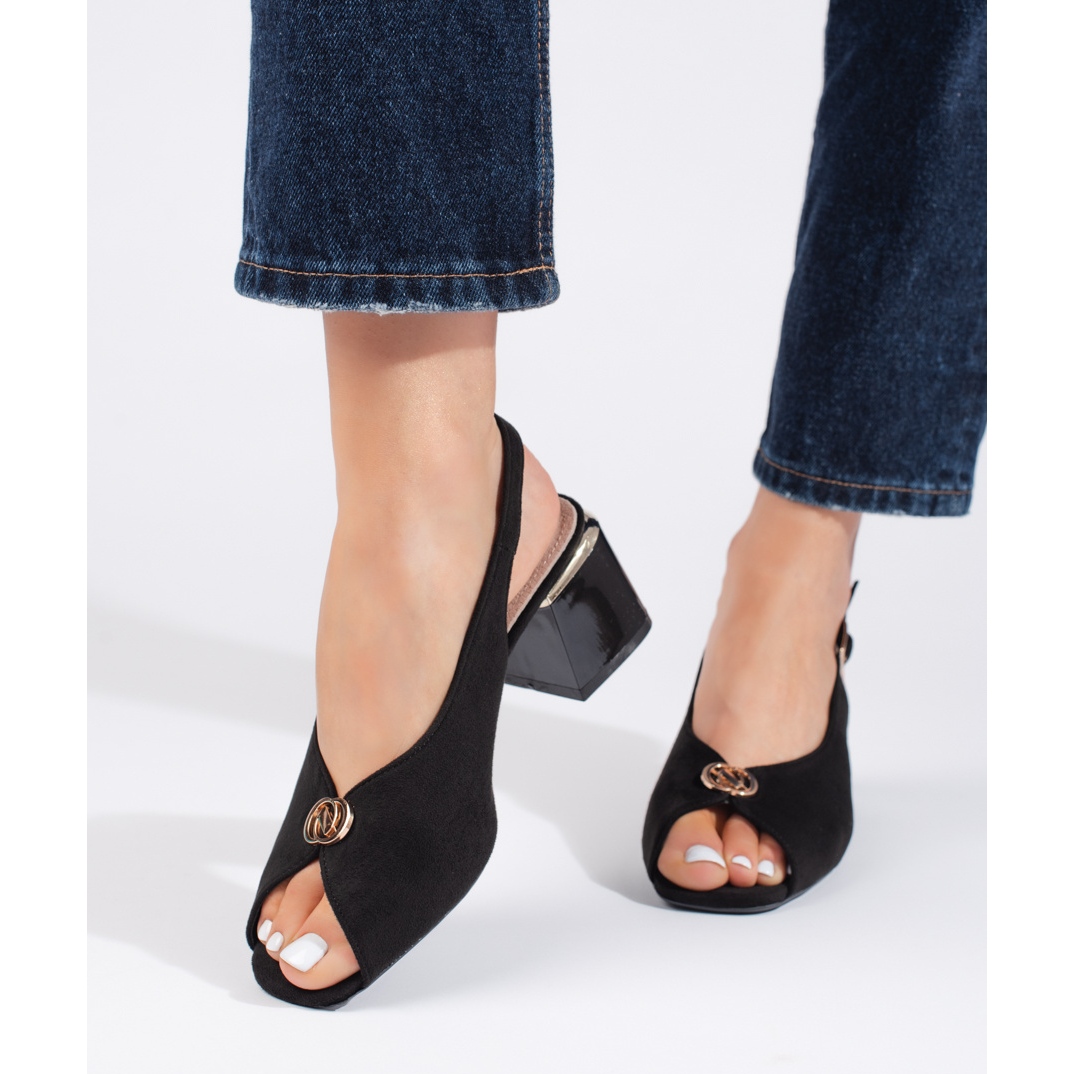 Inna marka Elegantní černé semišové sandály na vysokém podpatku černá