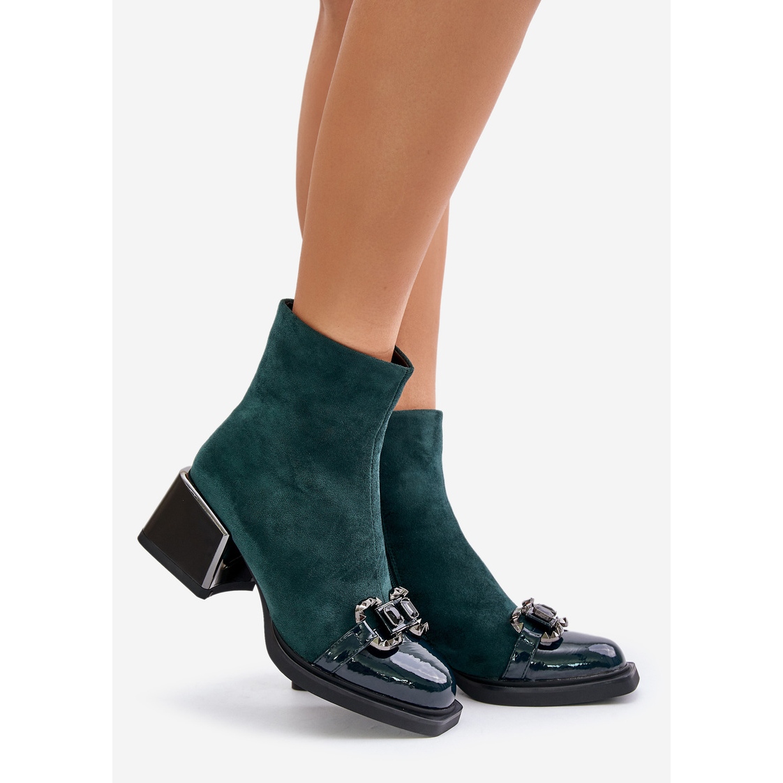 S.Barski S.Barski Elegantní dámské kozačky na vysokém podpatku s ozdobou, tmavě zelená MR880-127