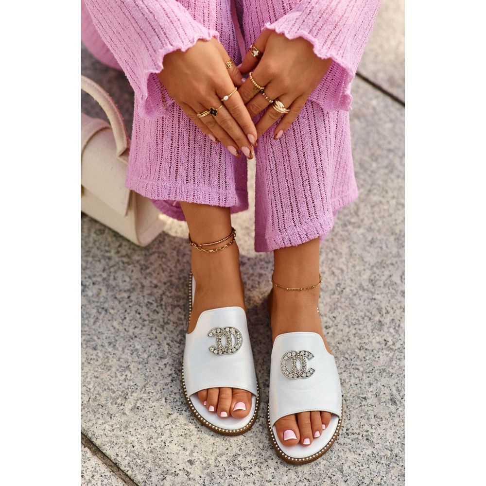 Elegantní ženské pantofle lesklé s ornamentem S. Barski KV27-050 ve stříbra je perfektní volbou pro ženy, které chtějí kombinovat styl s pohodlím. Tyto žabky, zakotvené do plochých podpatků, se vyznačují účinným, lesklým povrchem a nádhernou dekorací, která upouští oko a přidává eleganci jakékoli stylizaci.