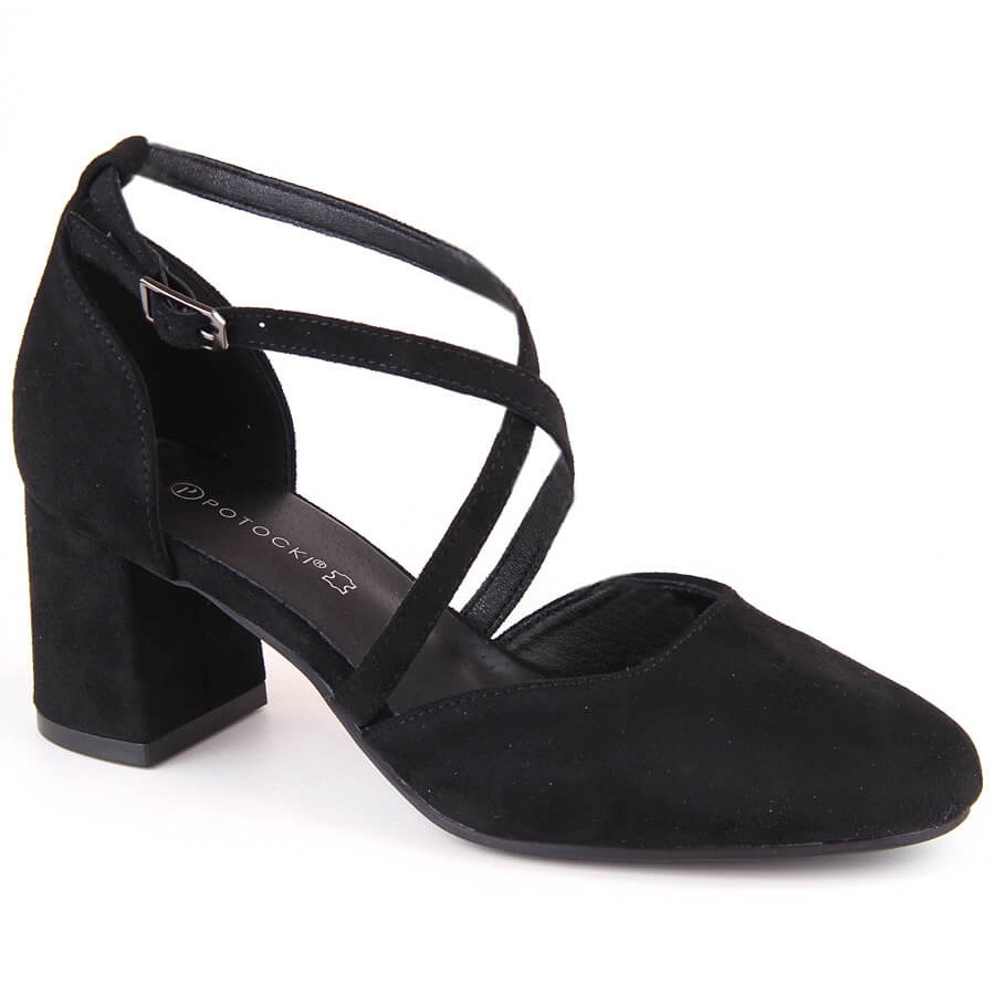 Elegantní dámské semišové sandály na vysokém podpatku, černé Potocki SZ12341, jsou perfektní volbou pro každou ženu, která si cení stylu a pohodlí. Tyto elegantní sandály v klasické černé barvě vyrobené z ekologické semišové kůže jsou ideální pro mnoho stylů, jak pro každodenní, tak pro zvláštní příležitosti.