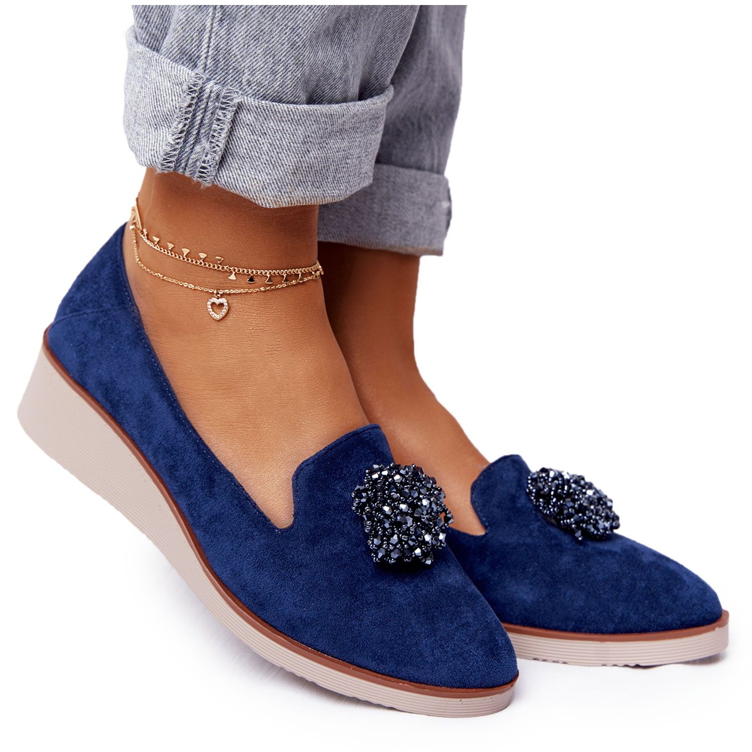 Vinceza Elegantní klínové boty Vinceza 10580 Suede Navy Blue námořnická modrá