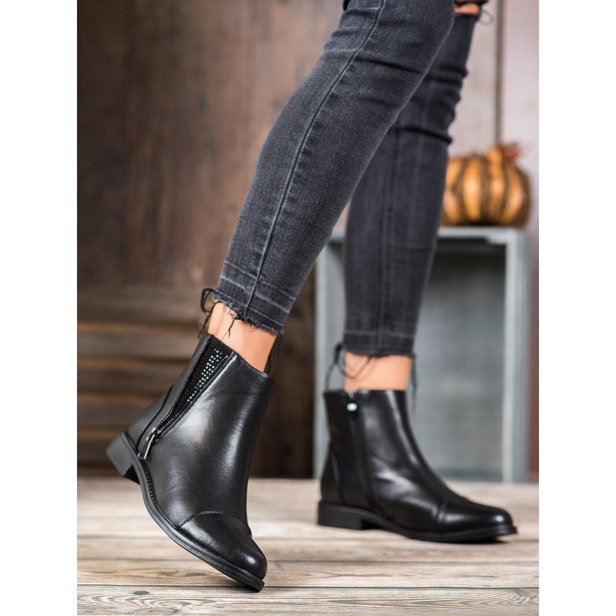 Chcete dodat každému vašemu podzimnímu outfitu šmrnc? Objevte znovu klasiku s J. Star Elegantní kotníkové boty s krystaly. Tyto černé kotníkové boty jsou esencí stylu a svým vzhledem se ubrání v každé módní situaci. Díky jednoduché řadě bot J. Star se hodí k různým sadám: od kalhot po šaty, od ležérních až po sofistikovanější outfity.
