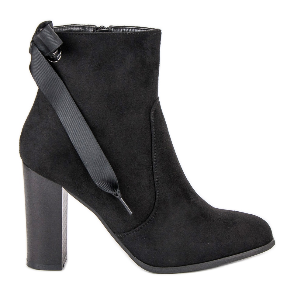 Nabízíme elegantní kotníkové boty na vysokém podpatku renomované značky Super Mode, které se stanou neodmyslitelným prvkem vašeho šatníku pro nadcházející sezónu. Tyto černé kotníkové boty vyrobené z vysoce kvalitního ekologického semiše spojují eleganci s pohodlím.
