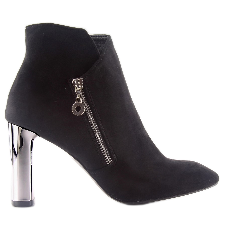 Inna marka Elegantní Kozačky Na Stříbrném Podpatku M280P černá