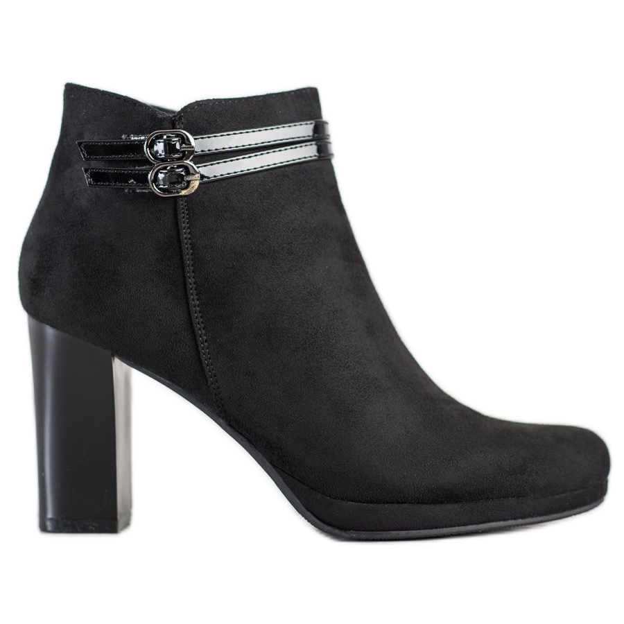 Objevte eleganci a pohodlí s černými kotníčkovými botami M.Daszyński, které se stanou dokonalým doplňkem vaší kolekce obuvi. Tyto krásné kozačky na vysokém podpatku, sahající lehce nad kotník, jistě zaujmou na každém večírku. Jsou vyrobeny z vysoce kvalitní semišové kůže a mají elegantní povrchovou úpravu, která jim dodává jedinečný styl.