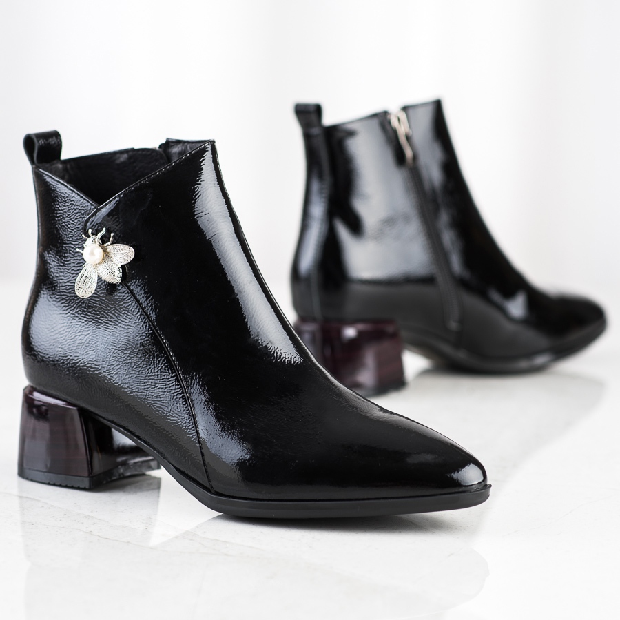 ARTIKER Elegantní kožené kozačky s ozdobou černý