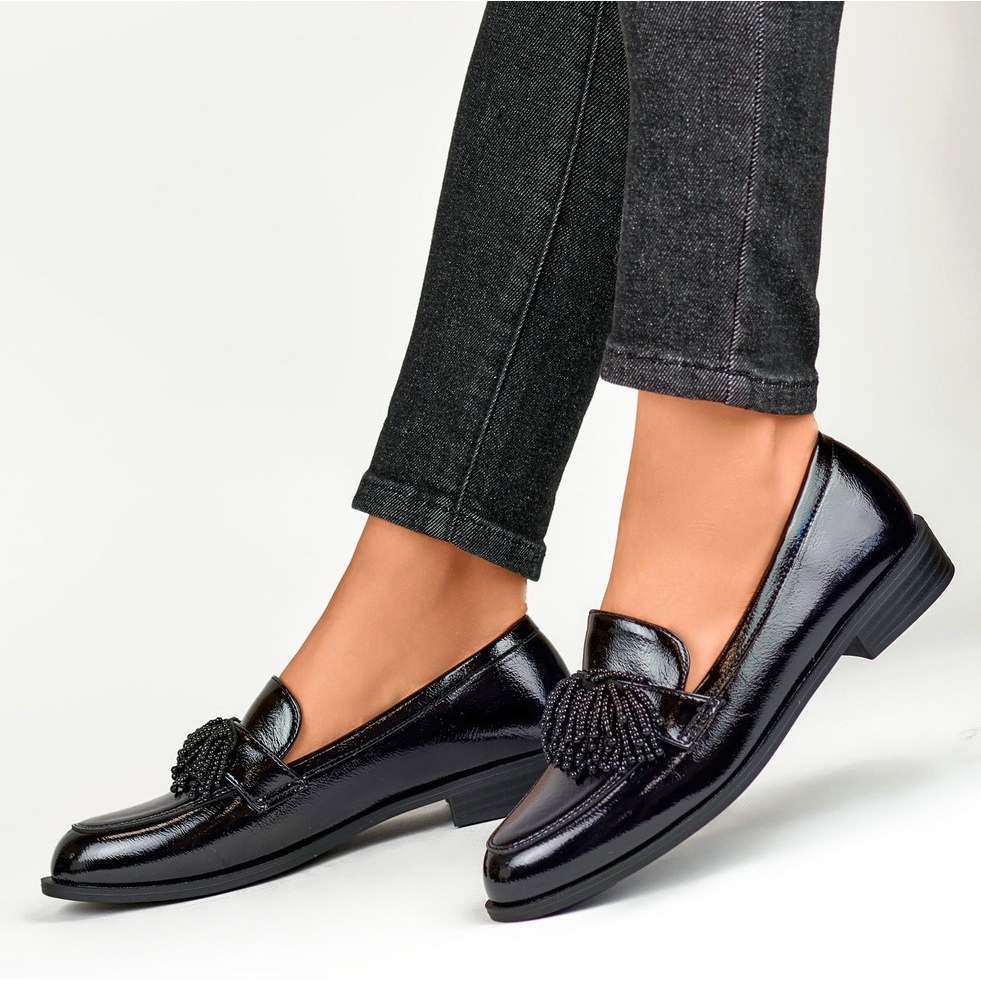 Inna marka Elegantní lakované černé dámské boty se zdobením černá