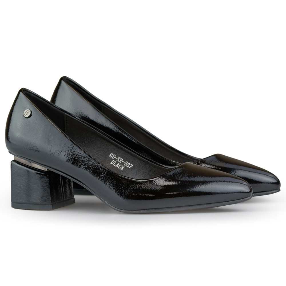 Inna marka Elegantní lakované černé lodičky na středním podpatku černá