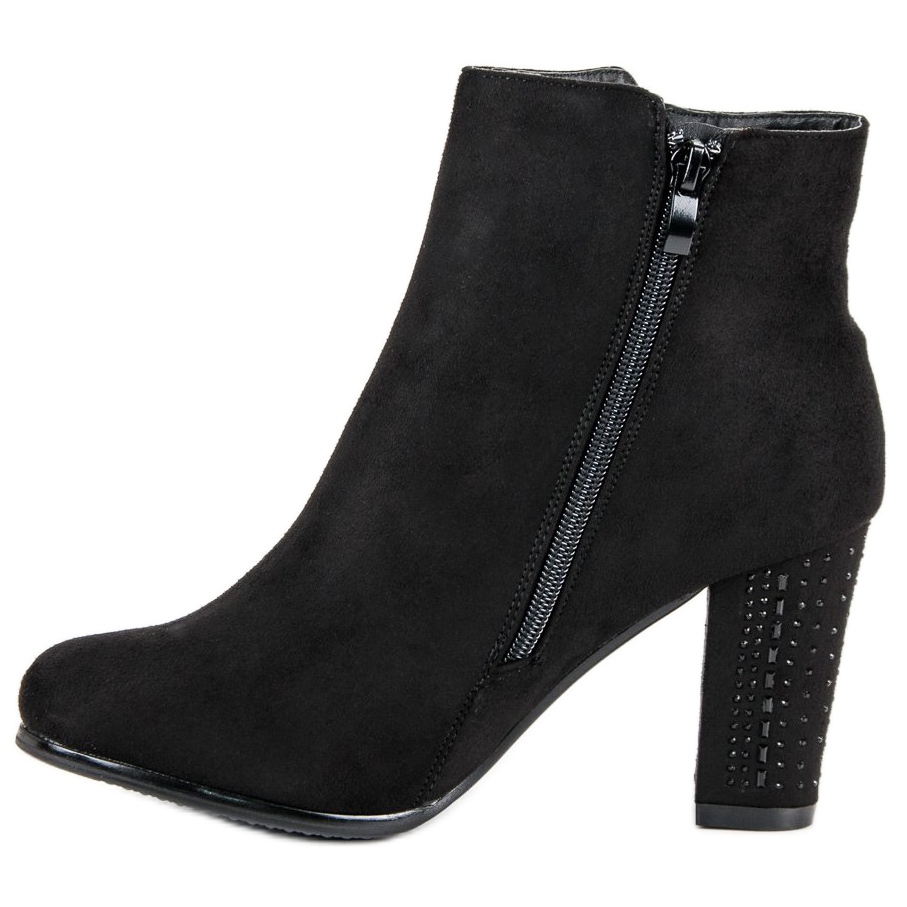 Zadní část bot zdobí malé lesklé krystaly, které jim dodávají jedinečný charakter a jsou jako stvořené pro večerní vycházky. Další výhodou je vyztužená pata, která zvyšuje komfort používání. Kozačky se zapínají na zip, díky kterému se snadno nazouvají i vyzouvají, kulatá špička dodává jemnost.