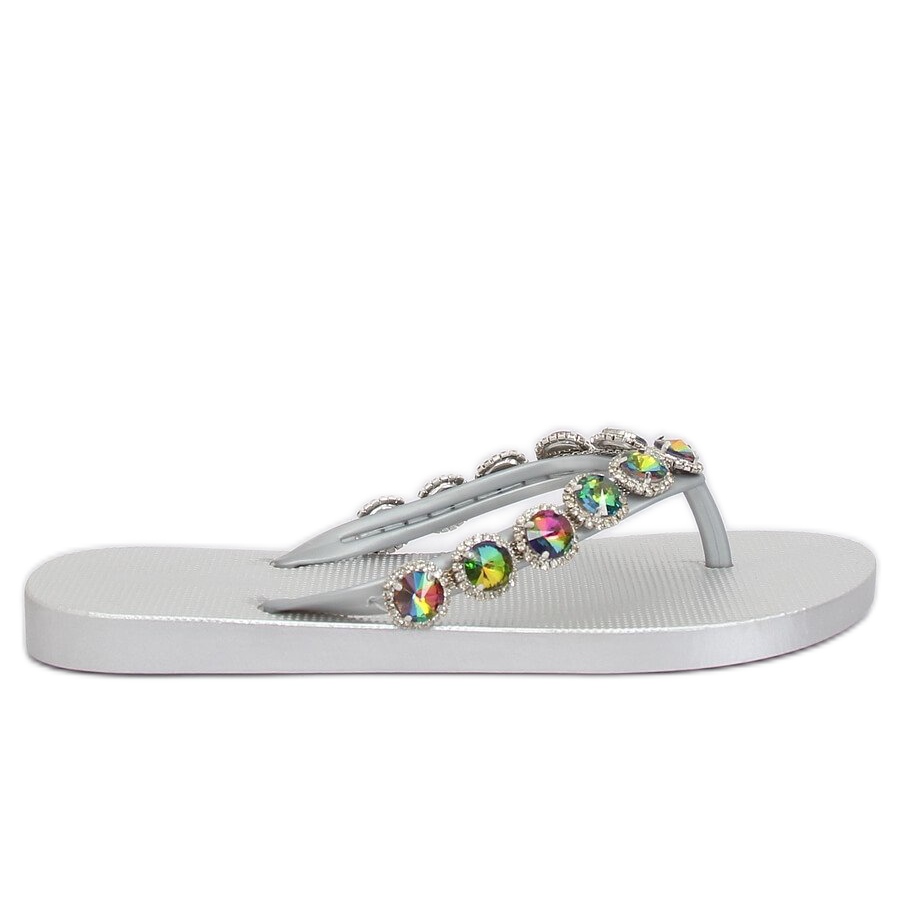 Inna marka Elegantní žabky se stříbrnými kamínky JH69 Silver šedá